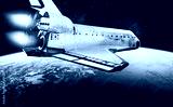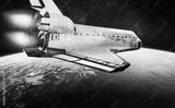 Space shuttle in dark outer space near Earth. Rocket on orbit of the planet. Elements of this image furnished by NASA