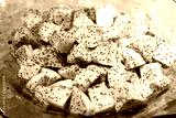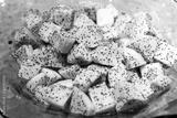 Dragon fruit, also known as pitahaya or strawberry pear, is a tropical fruit. Sliced dragon fruit in cubes.