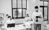 business, firing and job loss concept - sad fired male office worker with box of his personal stuff