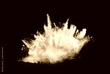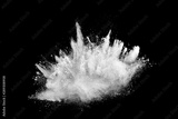 White powder explosion on black background. Colored cloud. Colorful dust explode. Paint Holi.