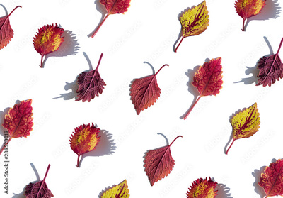 Colorful Autumn leaves concept pattern on the white background. Top view