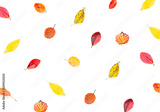 Colorful Autumn leaves concept pattern on the white background. Top view