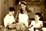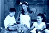 Mother, Son & Daughter Family In Kitchen Cooking Baking