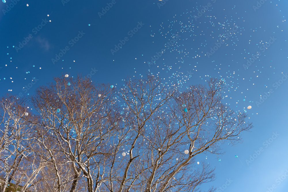 A skyful of balloon, colorful balloons all over the sky in spring time sunny day, a happiness concept