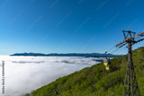 Panorama view from Unkai Terrace in summer time sunny day. Take the cable car at Tomamu Hoshino Resorts, going up to see the sea of clouds. Shimukappu village, Hokkaido, Japan