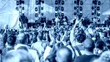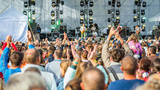 many different people at a concert listening to rock band music open air