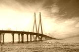 Bandra Worli sea link bridge of Mumbai and golden dramatic sky and cloud