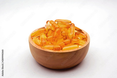 ish oil,Cod liver oil omega 3 Capsules isolated on white background for health care concept.
