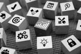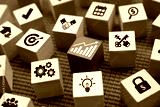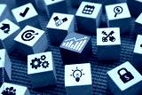 Graphic icons for business growth or the goal of achieving business success on wooden block toys.