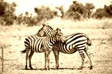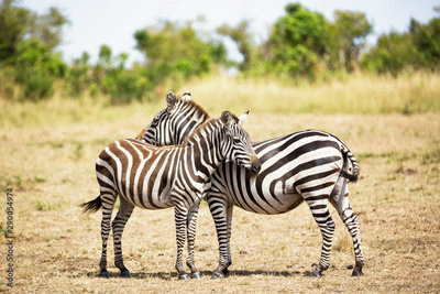 Zebra couple in Africa savannah. Masai Mara National park, Kenya