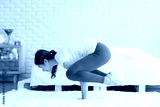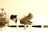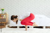 Athletic Asian woman practice yoga yoga Baby Crow or Baby Bakasana pose to meditation in bedroom after wake up in the morning Feeling so comfortable and relax,Healthcare Concept