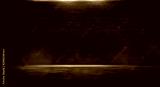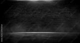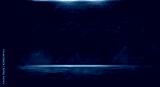 Blue dark background of empty foggy street with wet asphalt, illuminated by a searchlight, laser beams, smoke