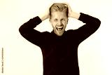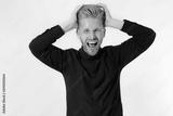 Man Depression signs and Symptoms. Young redheaded guy with red beard and black shirt shouting hard and angry. Failed startup and fail exam concept. Unhappy businessman with aggressive feelings.