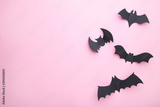 Halloween paper bats on pastel pink background. Halloween concept, frame