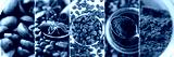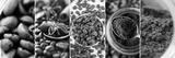 Collage made of different close-up images of coffee
