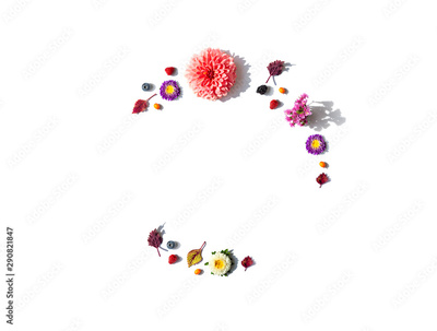 Colorful floral autumn frame with berries and leaves on the white background. Fall concept ornament. Top view. Copy space