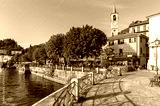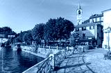 Promenade on the shore of Lake Maggiore in Laveno Mombello, province of Varese, Italy