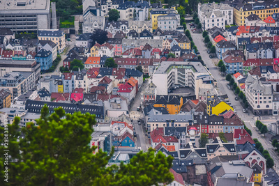 Bergen, Norway - july 18 2019: tourist look at the Scandinavian city of Bergen on a summer day