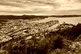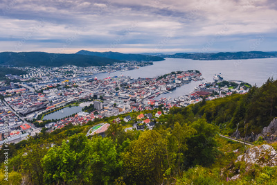 Bergen, Norway - july 18 2019: tourist look at the Scandinavian city of Bergen on a summer day