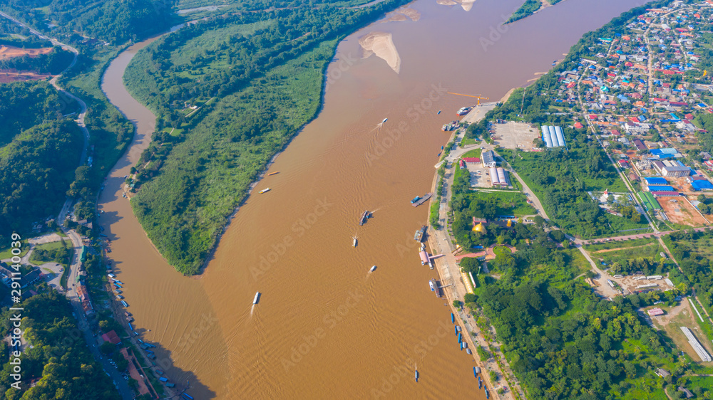Aerial view Golden Triangle at Mekong River, Chiang Rai, Thailand.