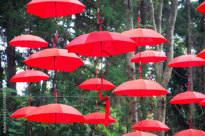 red umbrellas in Fenghuang China