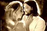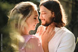 Portrait of young beautiful romantic couple happily hugging each other on date