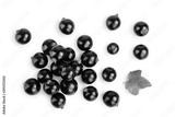 black currant with leaf isolated on white background. Top view. Flat lay pattern