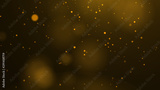 Golden abstract sparkles or glitter lights. Festive gold background. Defocused circles bokeh or particles. Template for design