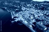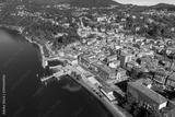 Aerial view of Luino, is a small town on the shore of Lake Maggiore in province of Varese, Italy.