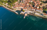 Aerial view of Luino, is a small town on the shore of Lake Maggiore in province of Varese, Italy.