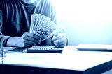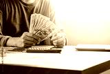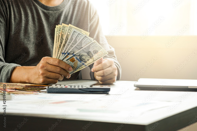 Businessman holding and give US dollar banknoted.US dollar is main and popular currency of exchange in the world.Investment and spayment concept.