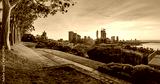 Cityscape of Perth Western Australia as the sun rises. The photo was taken in Kings Park