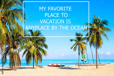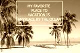 Vacation holidays background wallpaper with palms and tropical beach. Vacation quote My favorite place to vacation is anyplace by the ocean