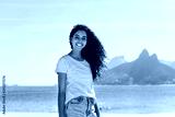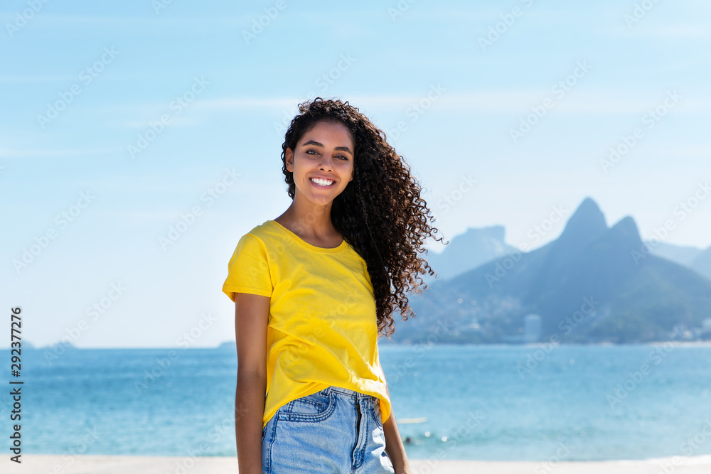 Smiling brazilian woman at Ipanema beach at Rio de Janeiro