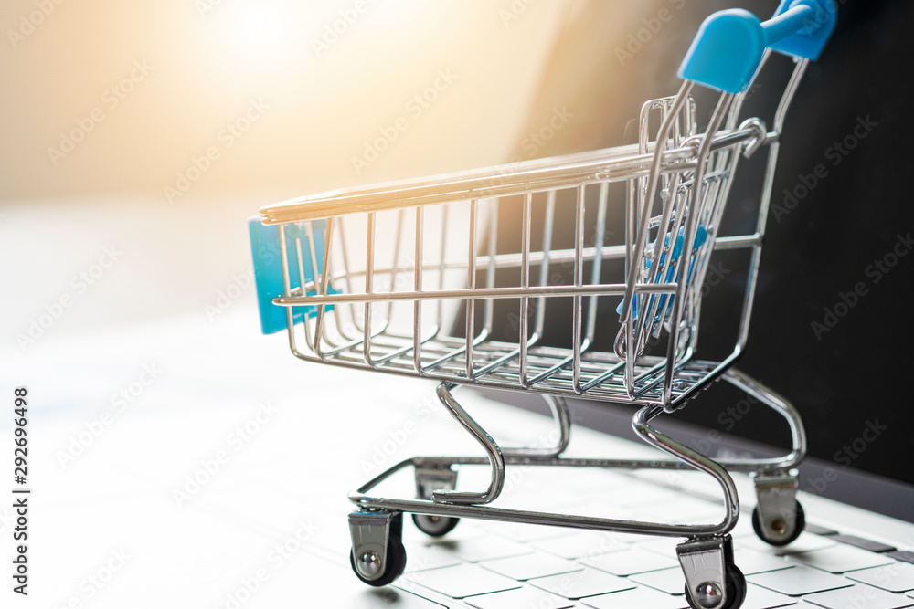 E-commerce and Online shopping concept. Trolley cart on laptop for order .