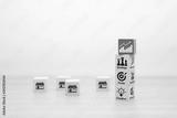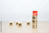 Business growth and franchise icons Store on wooden block for business growth concept.