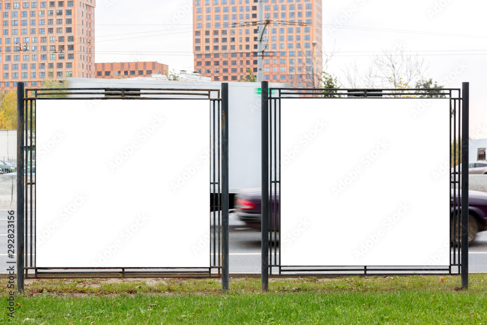 Modern empty blank advertising billboards banners in a city outdoors. Mockup for your advertising project.