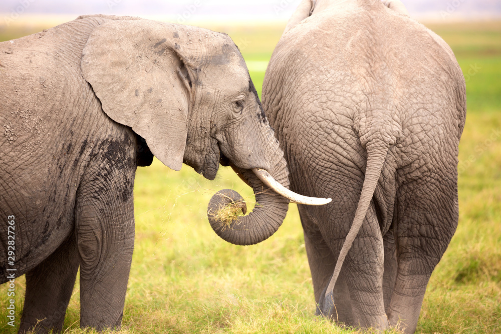 African elephants in Amboseli National Park. Kenya, Africa.