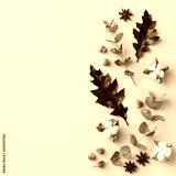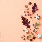 Creative autumn fall thanksgiving day composition with decorative leaves
