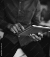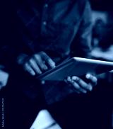 Close-up of a businessman folding and touching the digital tablet