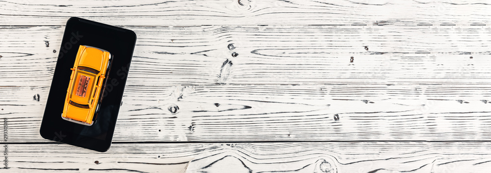 Smartphone application of taxi service for online searching calling and booking a cab. Taxi concept