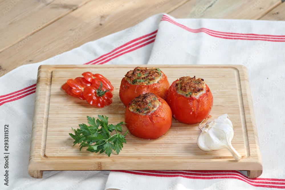 Tomates farcies avec farce ail et persil, faites maison