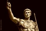 Caesar Augustus, the first emperor of Ancient Rome. Bronze monumental statue in the center of Rome isolated on black background