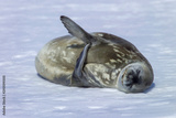 Sleeping weddell seal with itch on sea ice Coulman Island Ross Sea, Antarctica.