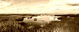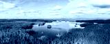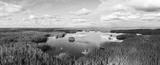 Aerial view on beautiful lake in Finland. Drone photo of Haukkajarvi lake in Helvetinjarvi National park. Lake with islands with forest and beautiful clouds in the sky.