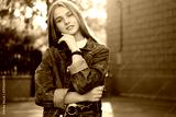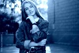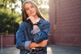 Beautiful casual girl in denim jacket sensually looking in camera outdoor