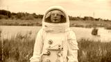 Astronaut returned to earth on the background of nature