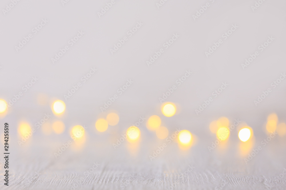 Closeup view of white table with blurred lights