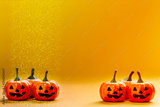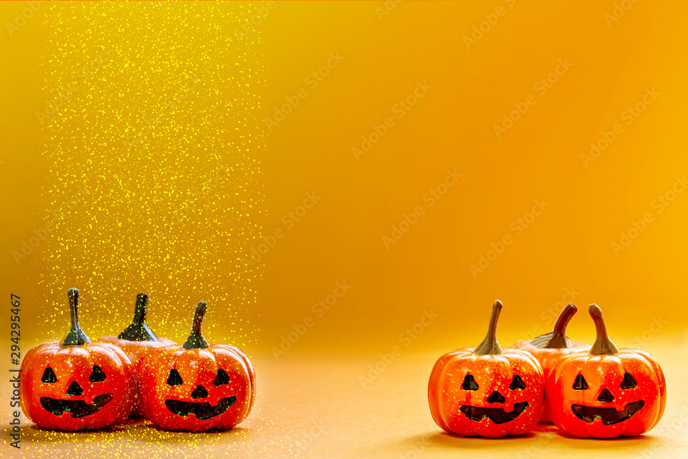 黄色オレンジ系のカラフルバックと沢山のオレンジのカボチャとキラキラの砂