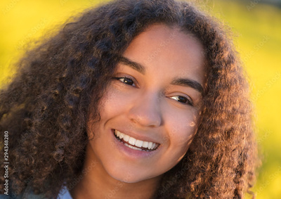 Mixed Race African American Girl Teenager With Perfect Teeth
